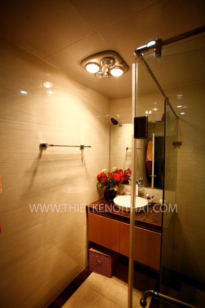 Cuối cùng là thiết kế và thi công nội thất phòng tắm kết hợp nhà vệ sinh mang phong cách hiện đại. Không gian thiết kế khá nhỏ, không có nhiều khoảng trống khiến cho thiết kế còn hạn chế, độ thoáng và mở khá thấp. Tuy nhiên, nhận biết được mặt hạn chế này và vận dụng khéo léo các cách khắc phục, kiến trúc sư đã thành công trong việc mang lại cảm giác cơi nới cho không gian hẹp. Nhờ vào việc sử dụng các vật liệu nhẹ như gương, kính cường lực trong suốt, đá tự nhiên,… có độ phản chiếu cao mà thiết kế tạo độ bóng thích hợp, tương tác ánh sáng phù hợp góp phần tăng độ mở và thoáng cho không gian hẹp.