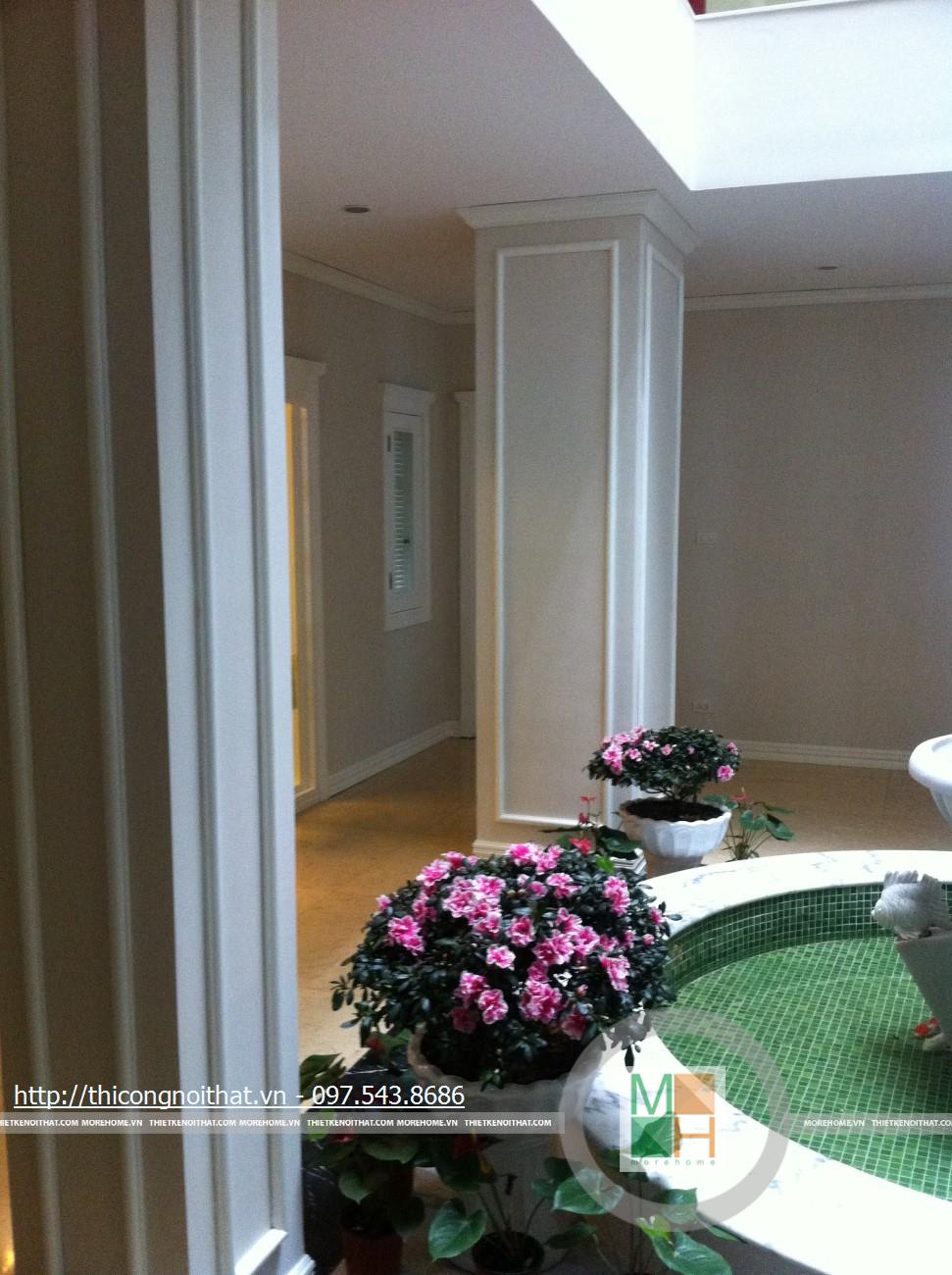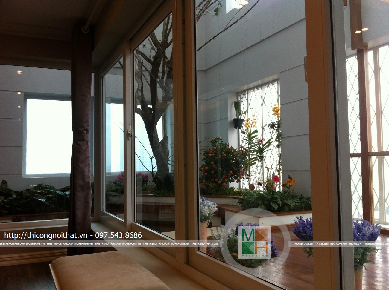 Phòng ngủ nhà anh Cường còn thật sự lãng mạn khi từ đây bước tới cánh cửa kính bạn sẽ thấy 1 không gian đầy ắp thiên nhiên với vườn hoa rực rỡ. Với cách lắp đặt cửa kính này, vào những ngày nghỉ hay khi thư giãn trên chiếc giường ngủ êm ái, bạn vẫn có thể ngắm nhìn những bông hoa đang đua sắc. Anh Toàn còn là 1 người rất ưa thích thiên nhiên, hoa cỏ khi anh đã đầu tư xây dựng cả 1 không gian tràn đầy thiên nhiên với cây cối, hoa lá và hòn non bộ ngay trong chính ngôi nhà của mình.