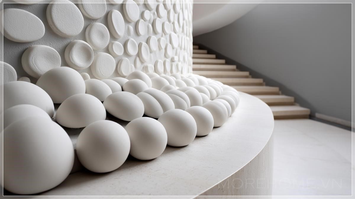 Trong thế giới thiết kế nội thất hiện đại, sự tối giản đã trở thành một xu hướng không thể bỏ qua. Những chi tiết đơn giản nhưng đầy tính nghệ thuật, như những chiếc tường tròn trắng, đã tạo ra một không gian thanh thoát và nhẹ nhàng. Cấu trúc hình tròn với màu trắng tinh khiết mang đến sự hài hòa và làm tăng cảm giác rộng rãi cho không gian.