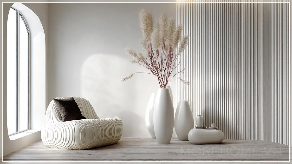 Không cần quá nhiều chi tiết phức tạp, chỉ cần một bức tường tròn màu trắng là đủ để khiến không gian trở nên sang trọng và hiện đại. Đây chính là vẻ đẹp mà phong cách tối giản mang lại, một vẻ đẹp không ồn ào nhưng lại đầy sức cuốn hút.