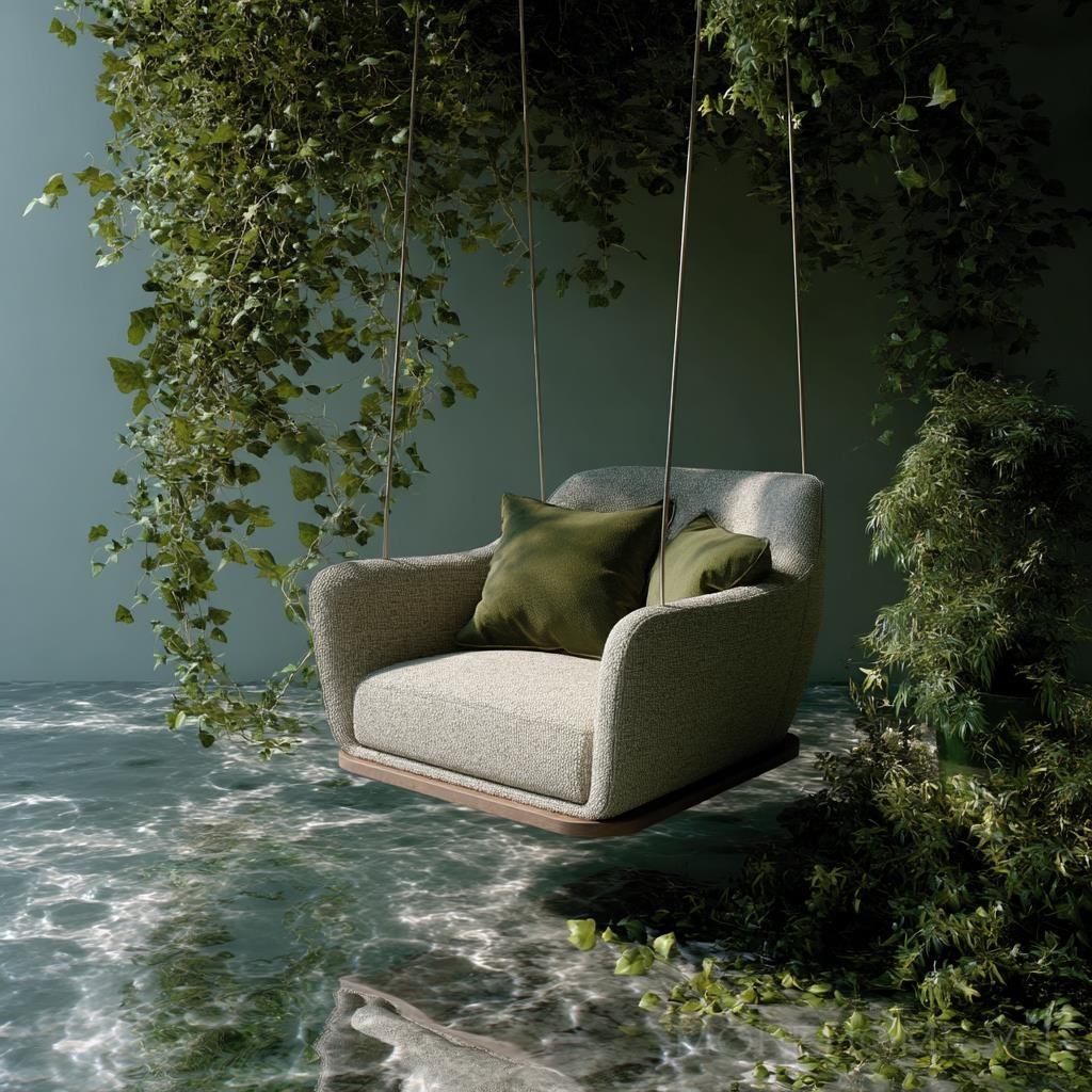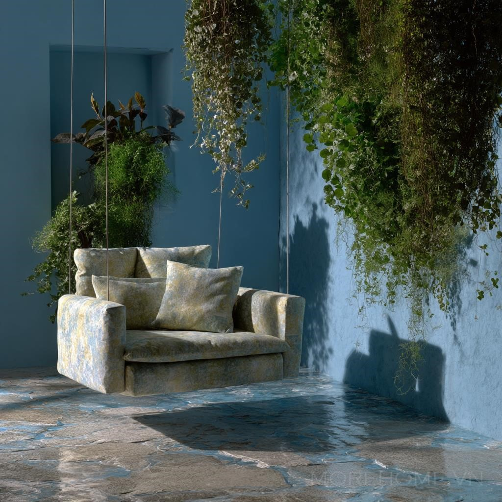 Sự kết hợp hoàn hảo giữa các yếu tố thiên nhiên và nội thất hiện đại này không chỉ tạo ra một không gian sống đẹp mắt mà còn mang đến một cảm giác thư giãn và dễ chịu. Ghế Moroso, với sự lơ lửng trên không, tạo cảm giác như bạn đang chìm trong một thế giới tĩnh lặng, hòa hợp với không gian xung quanh.