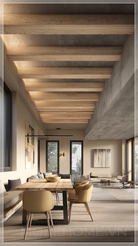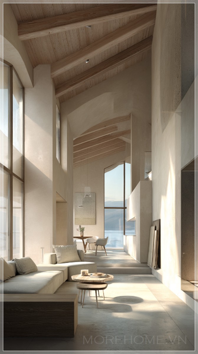 Không gian này không chỉ dừng lại ở giá trị thẩm mỹ, mà còn là tuyên ngôn về lối sống cân bằng—nơi con người trở về với thiên nhiên trong một nhịp điệu sống chậm rãi và tỉnh thức. Những khung cửa mở ra khung cảnh hồ nước rộng lớn, những tia nắng nhẹ xuyên qua lớp rèm vải mỏng, và tiếng gió thoảng qua vách đá thô, tất cả tạo nên một trạng thái sống có chiều sâu và cảm xúc. Trong ngữ cảnh của thiết kế đương đại, căn biệt thự trên hồ không chỉ là một nơi ở, mà còn là nơi tái tạo năng lượng tinh thần.