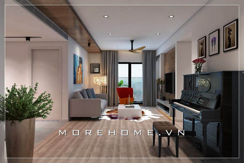 Ý tưởng thiết kế hiện đại tạo nên vẻ đẹp năng động, trẻ trung cho phòng khách căn hộ chung cư