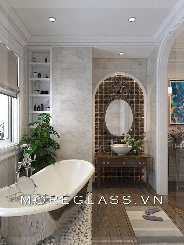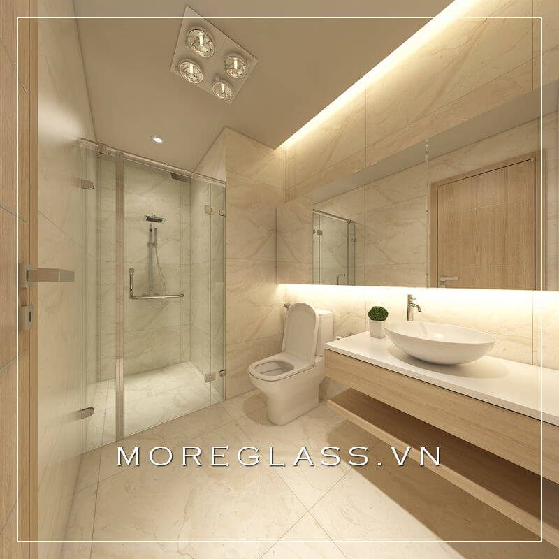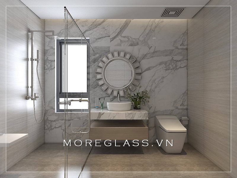 Mẫu phòng tắm hiện đại có kính đẹp, được kết hợp với thiết bị vệ sinh cao cấp và tiện nghi, đang được ưa chuộng nhiều nhất hiện nay.