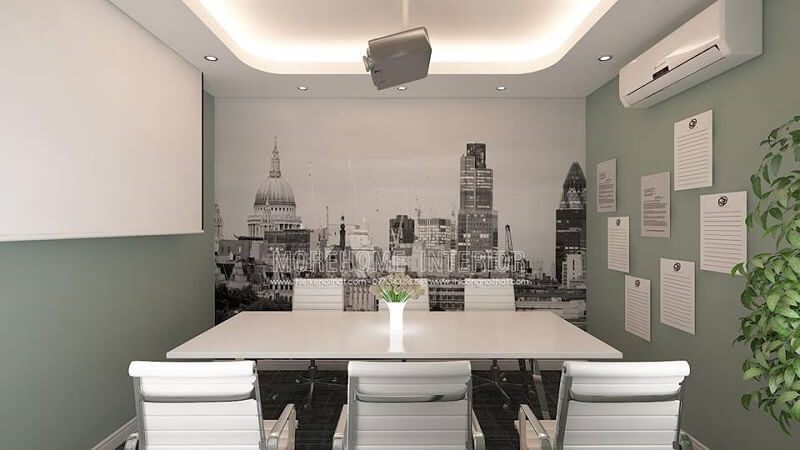 . Để làm nên một phòng họp văn phòng độc đáo và ấn tượng, sử dụng giấy dán tường và tranh canvas là một lựa chọn tuyệt vời để tạo ra những điểm nhấn cho căn phòng.
