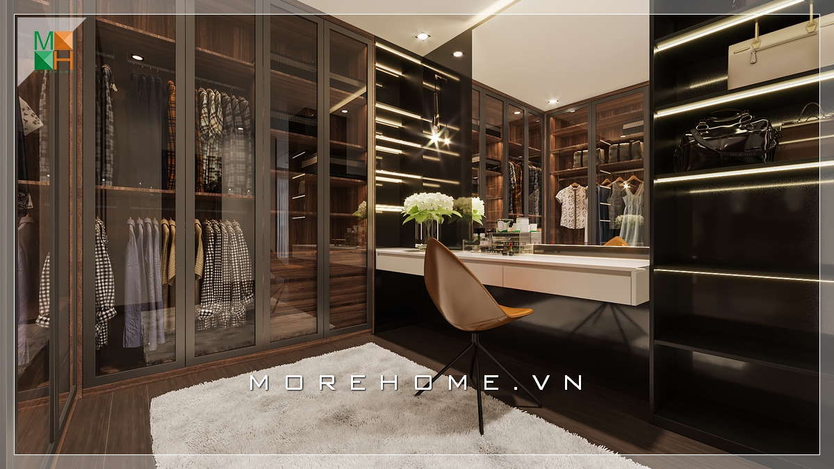 Thiết kế nội thất phòng thay đồ hiện đại rất tiện nghi cho chung cư, nhà phố, biệt thự.